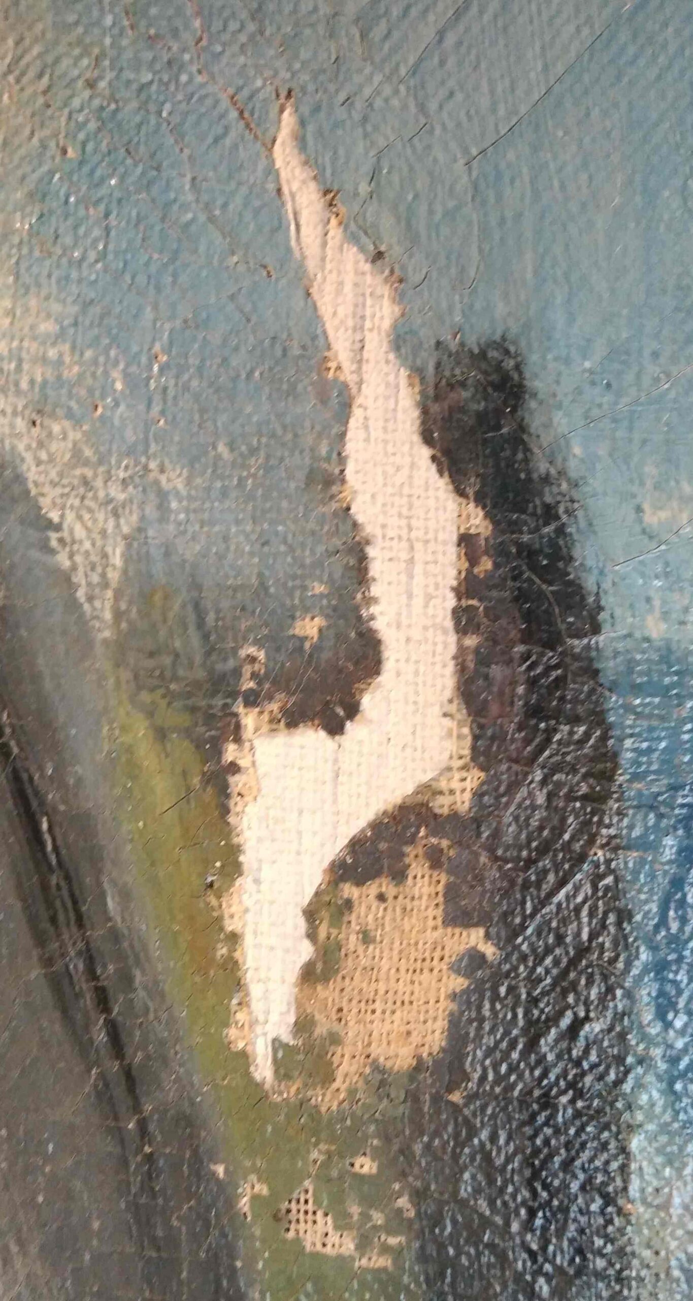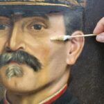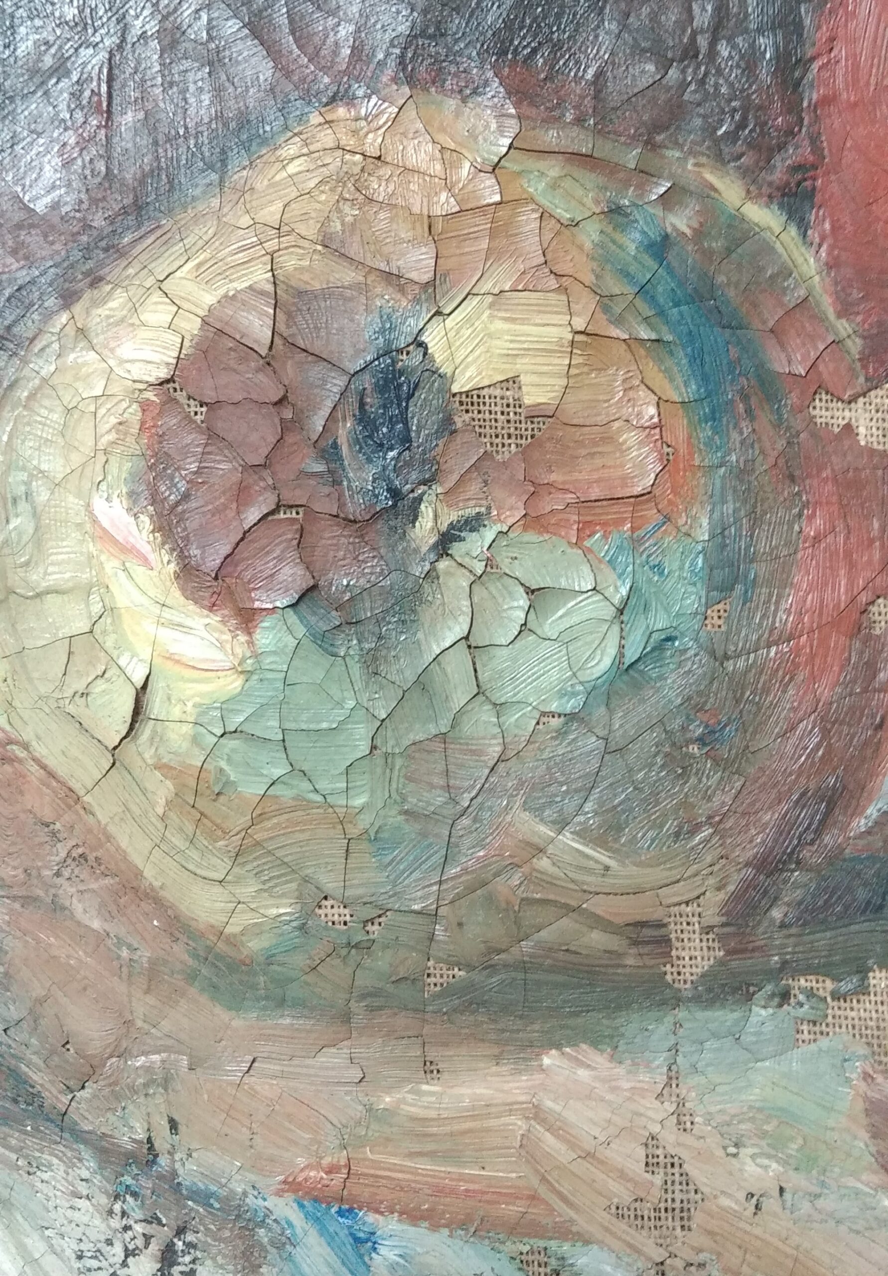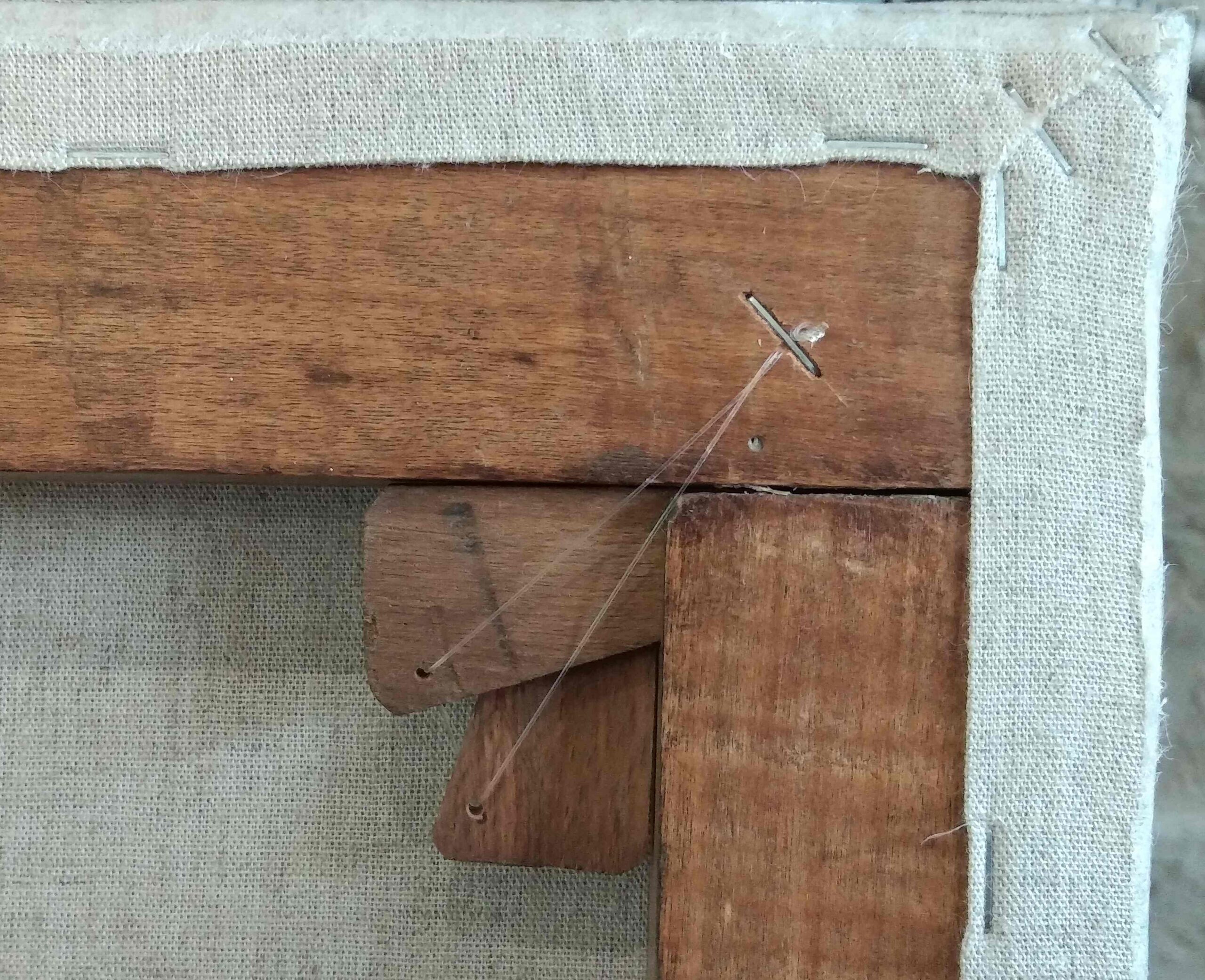 Dérestauration : désentoilage, retrait de pièces et de mastics anciens.