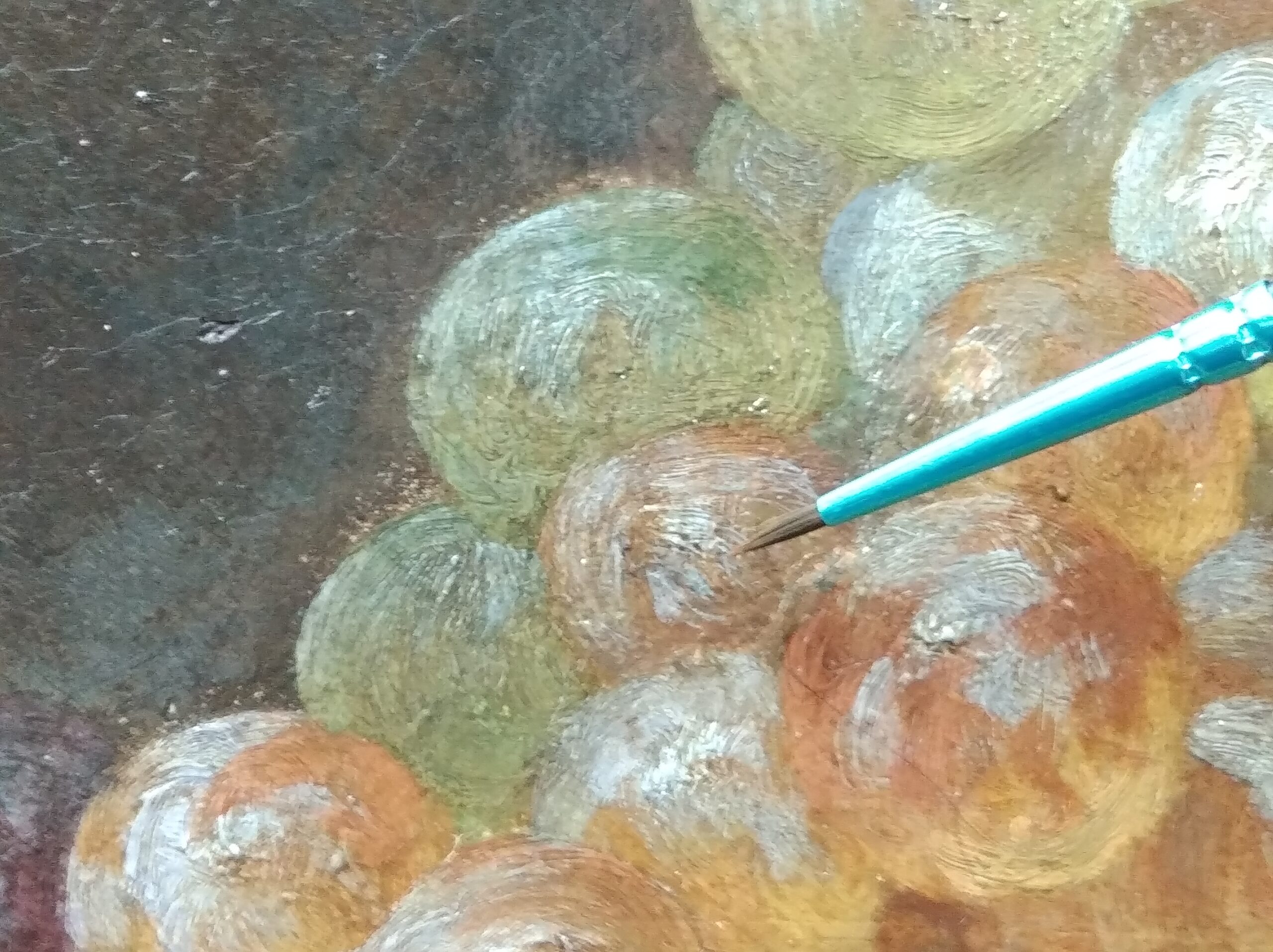 Masticage des lacunes et réintégration par retouches illusionnistes.